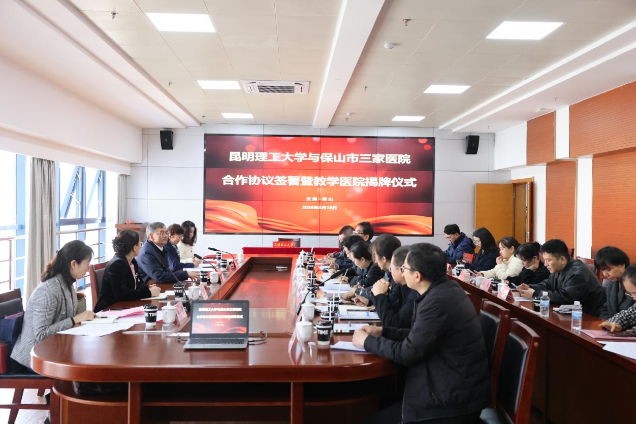 2026年3月18日,昆明理工大学教学医院合作协议签署暨揭牌仪式在保山市举行。昆明理工大学党委常委、副校长潘学军,保山市人民政府副市长高康出席仪式。仪式由保山市卫生健康委党组书记、主任刘萍主持。